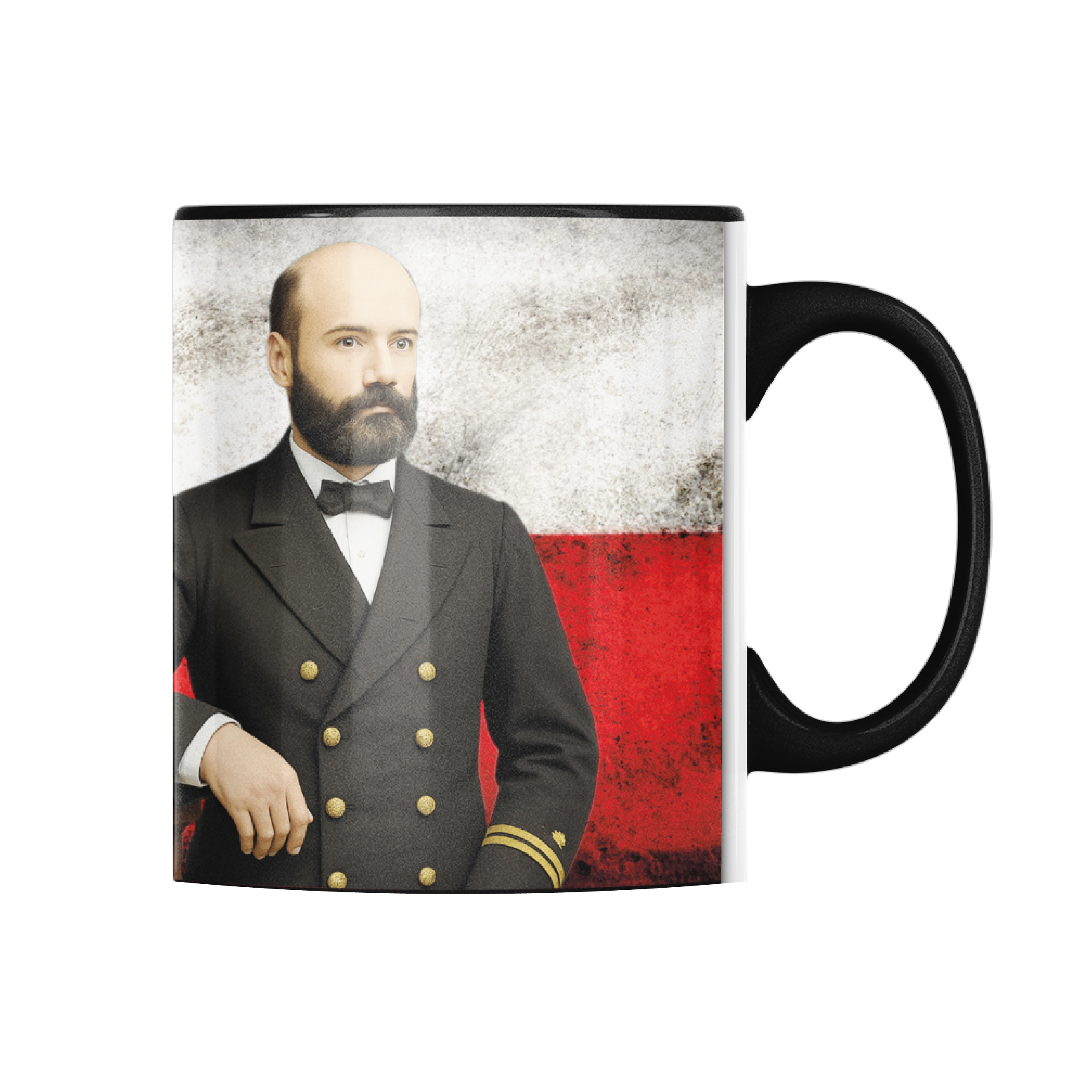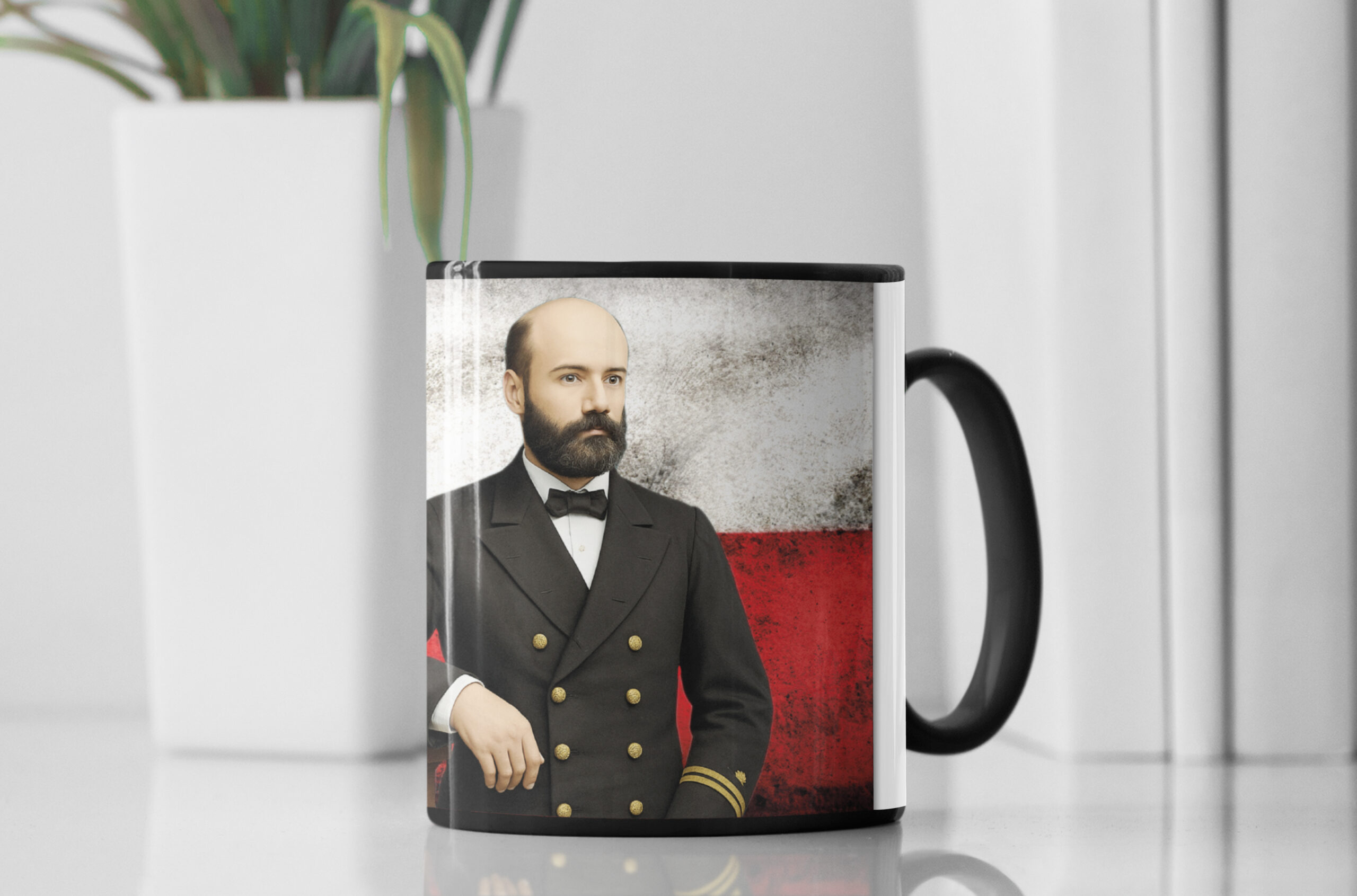Tazón con diseño Arturo Prat y bandera chilena. Historia, orgullo y diseño IKONIKO para tu café diario.